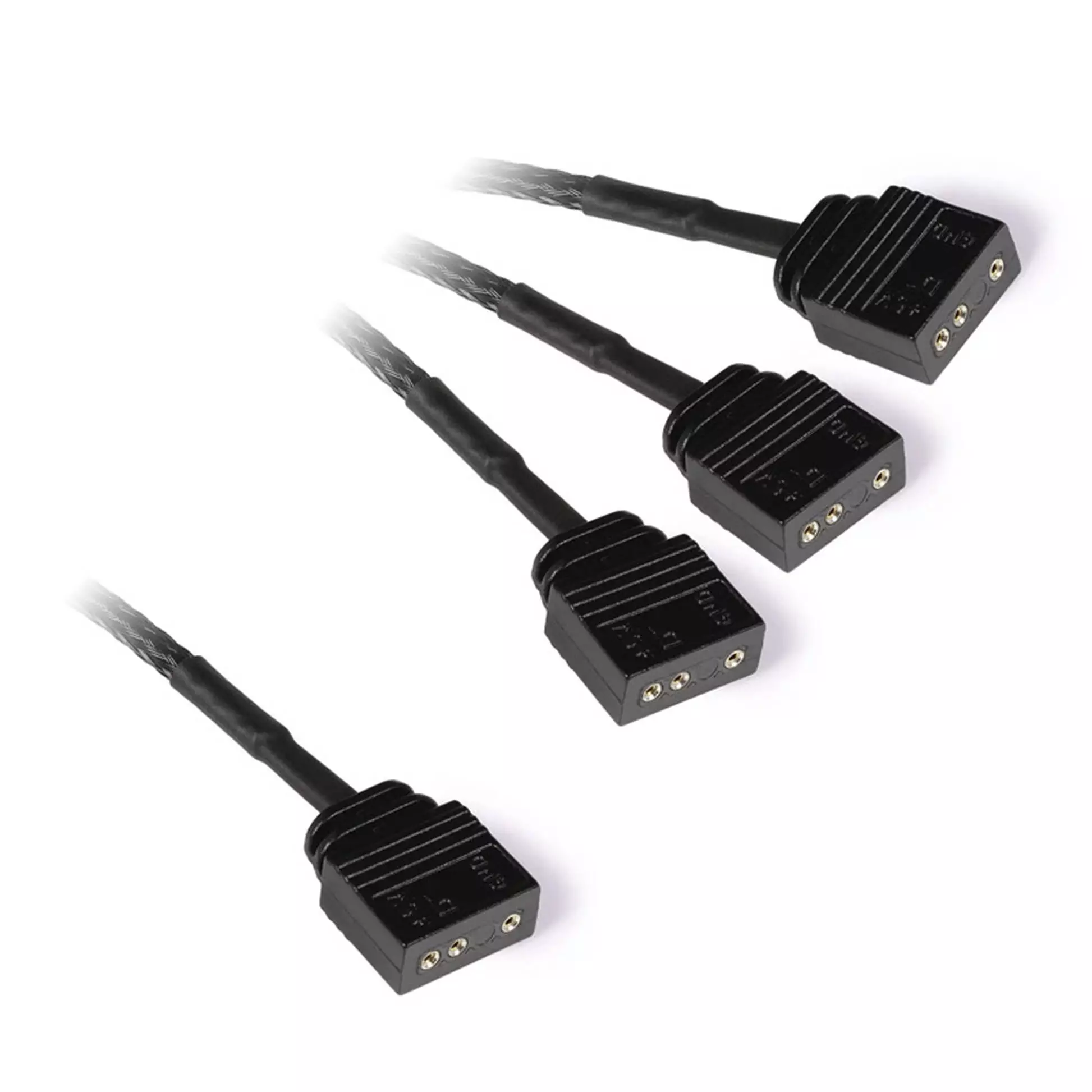 - Złącza: 1x 3-pin męskie na 3x 3-pin żeńskie – standardowe gniazda dla systemów cyfrowego oświetlenia.