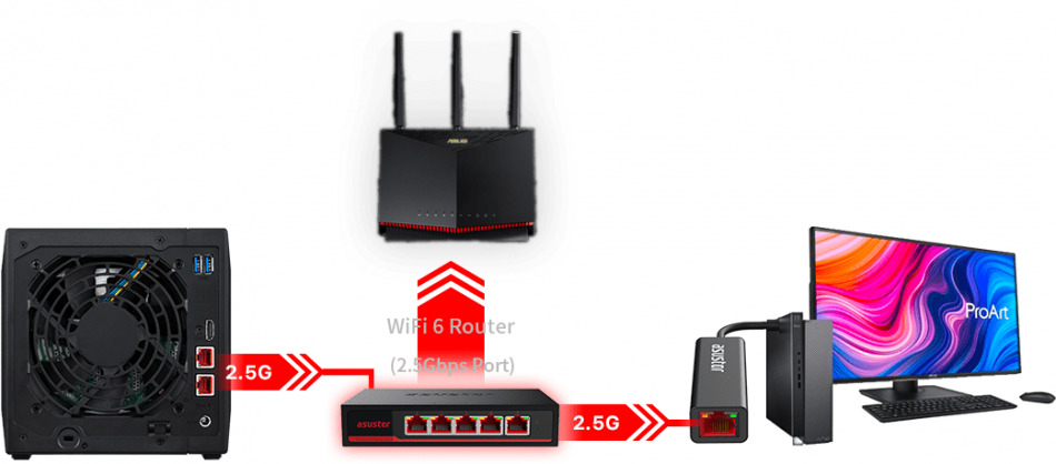 Duże szybkości 2,5GbE - 2,5 Gigabitowe szybkości dzięki zastosowaniu kabli Cat5e. Nie są wymagane specjalne kable. |