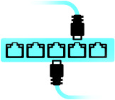 Używanie zwykłych portów Ethernet 8p8c, znanych także jako porty RJ-45, zapewnia zgodność z większością sprzedawanych obecnie urządzeń konsumenckich. Przełącznik Switch'nstor w pełni obsługuje także kable Cat 5e i nowsze, dla zapewnienia ekscytujących odczuć jednocześnie bezproblemowego działania.