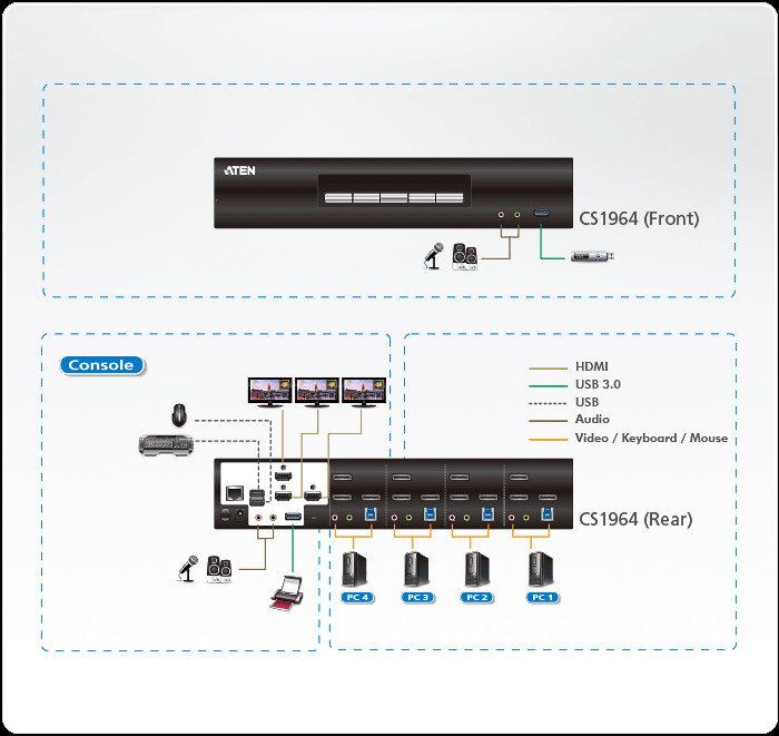 ATEN 4-Port USB3.0 4K DP KVMP CS1964-AT-G