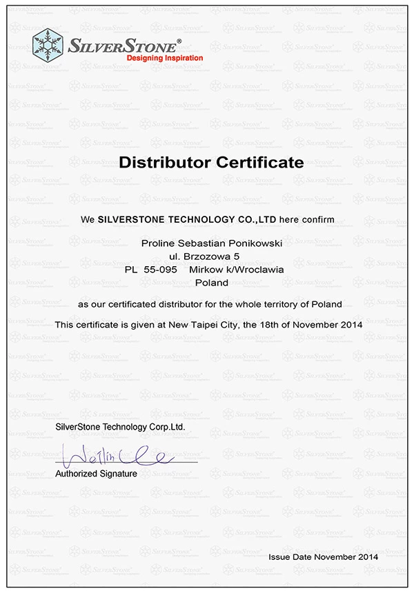 Z radością informujemy Państwa iż ProLine otrzymał status oficjalnego dystrybutora produktów marki Silverstone na terenie Polski. Status ten umożliwia dokonywania bezpośrednich zakupów od Silverstone oraz gwarantuje pełne wsparcie marketingowe, technologiczne i techniczne. Firma ProLine jest także jedynym oficjalnym w Polsce partnerem, który posiada status dystrybutora marki Silverstone. ProLine i Silverstone współpracują razem od ponad 5 lat, a otrzymanie tego niezwykle ważnego statusu oficjalnego dystrybutora pozwoli na zwiększenie skali prowadzonego wspólnie biznesu.