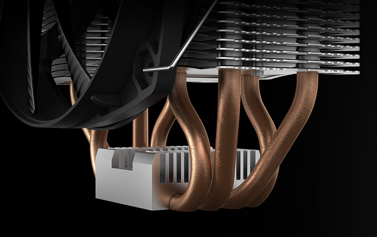 Maksymalizuje przewodzenie ciepłaDzięki technologii Heatpipe Direct Touch (HDT) ciepło z procesora jest pochłaniane bezpośrednio przez cztery wysokowydajne miedziane rurki cieplne o średnicy 6 mm.