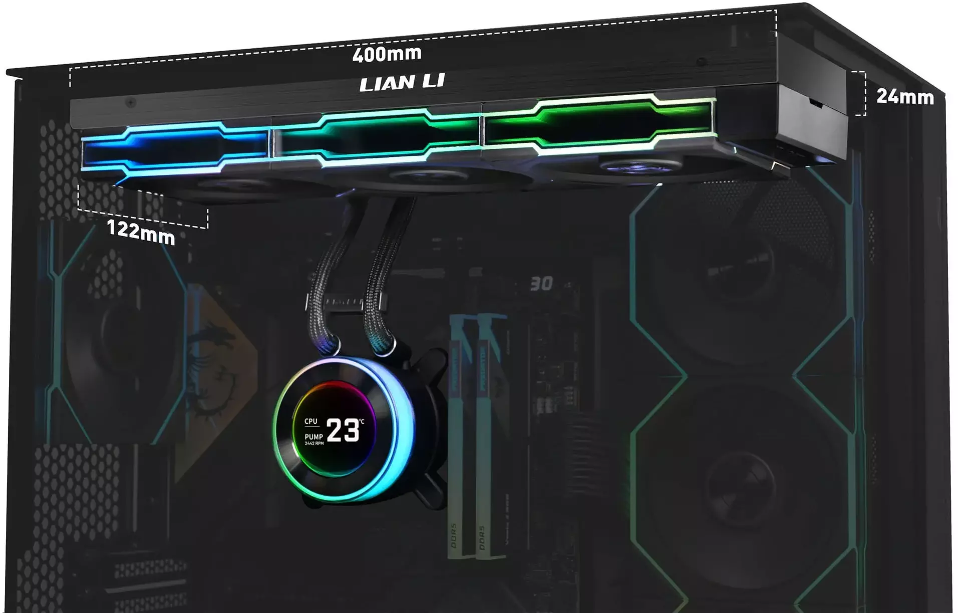 - Radiator 360 mm: Kompaktowa konstrukcja o grubości zaledwie 24 mm, zapewniająca doskonałą kompatybilność z większością obudów.