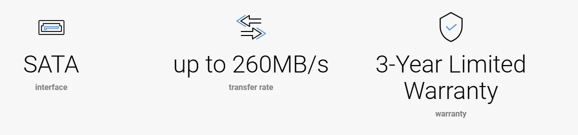 - Prędkość obrotowa: 7200 RPM – umożliwia płynny transfer danych z prędkością do 260 MB/s.