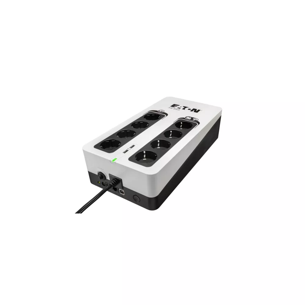 - Liczba gniazd: 8 wyjść typu Schuko – cztery z nich oferują pełne podtrzymanie bateryjne, a cztery dodatkowe chronią przed skokami napięcia.