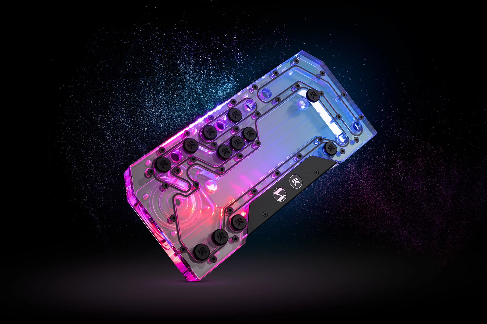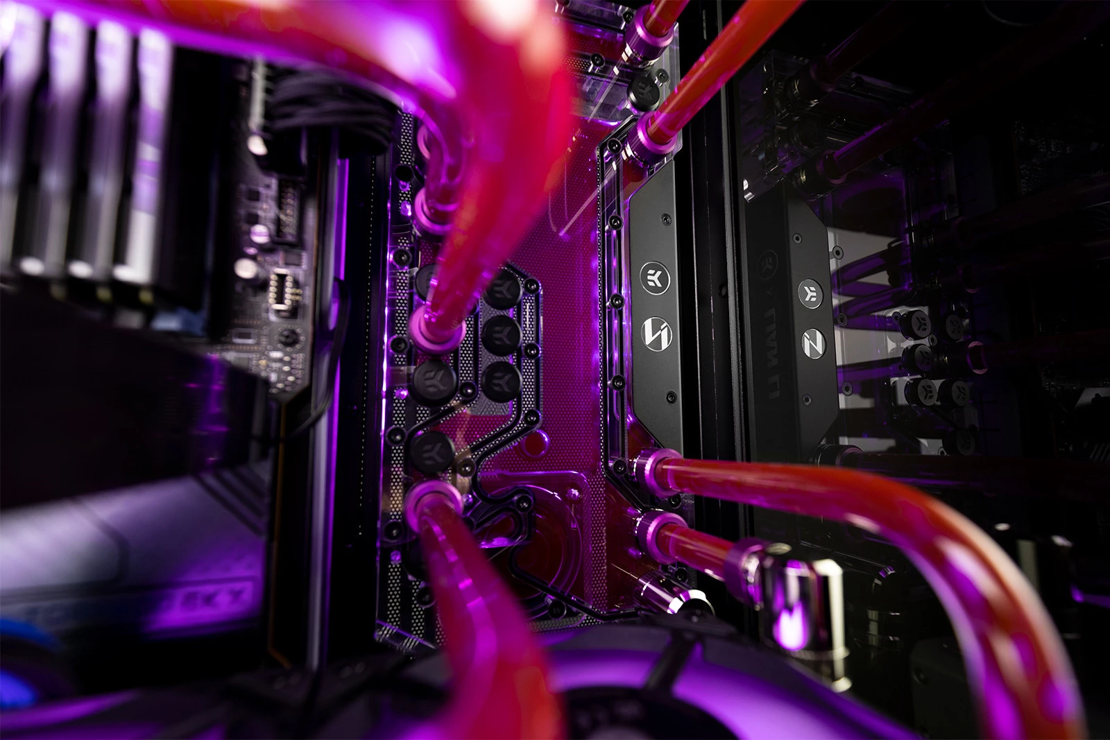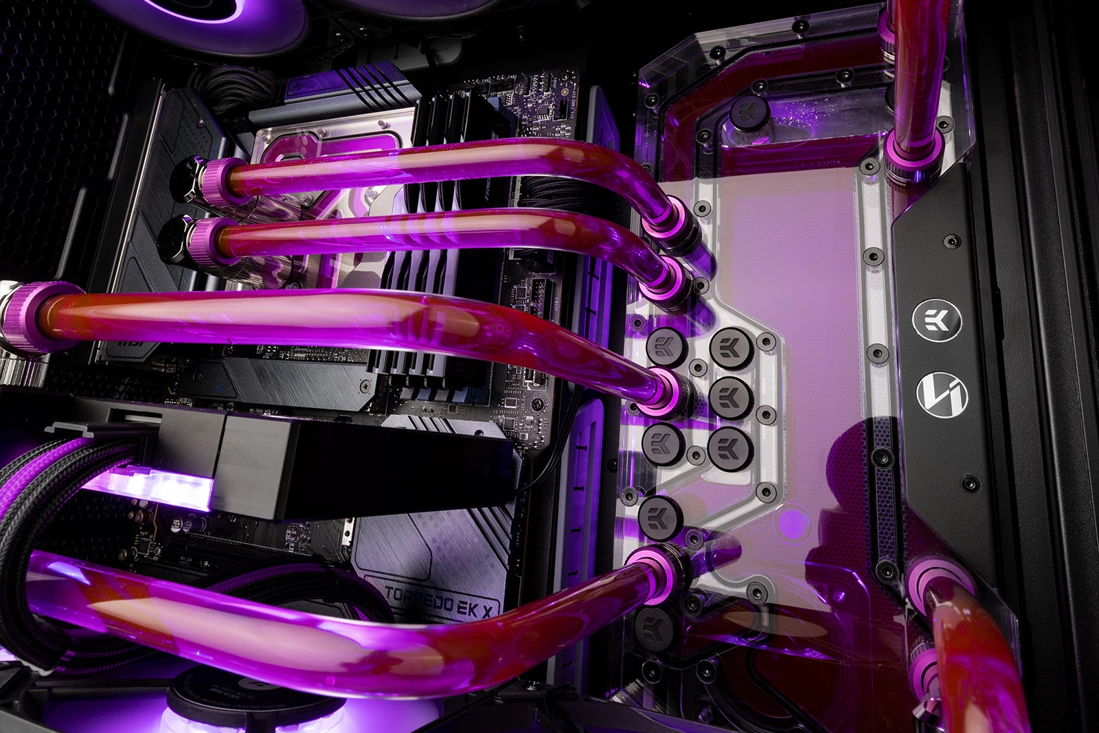 - Standard EK-Matrix7: Optymalizacja położenia wlotów i wylotów – pozwala na łatwe łączenie komponentów bez skomplikowanego gięcia rurek.