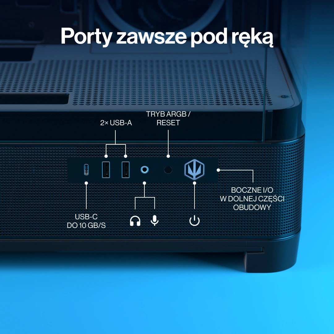 - Panel I/O: Szybkie złącze USB-C 3.2 Gen 2 umieszczone na bocznej ściance dla łatwego dostępu.
