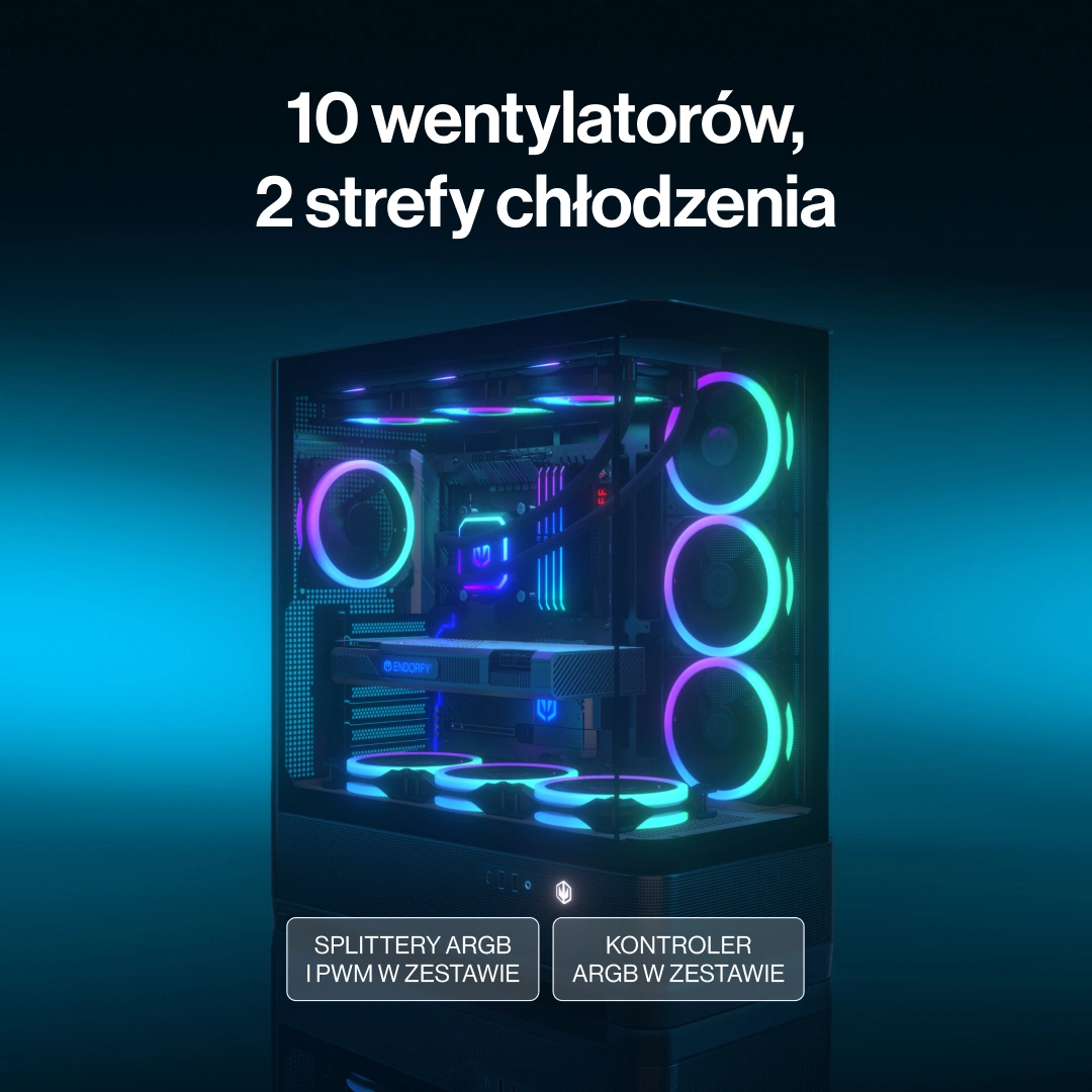 - Liczba miejsc na wentylatory: Maksymalnie 10 jednostek 120 mm - Potężny potencjał wentylacyjny rozdzielony na dwie niezależne strefy.