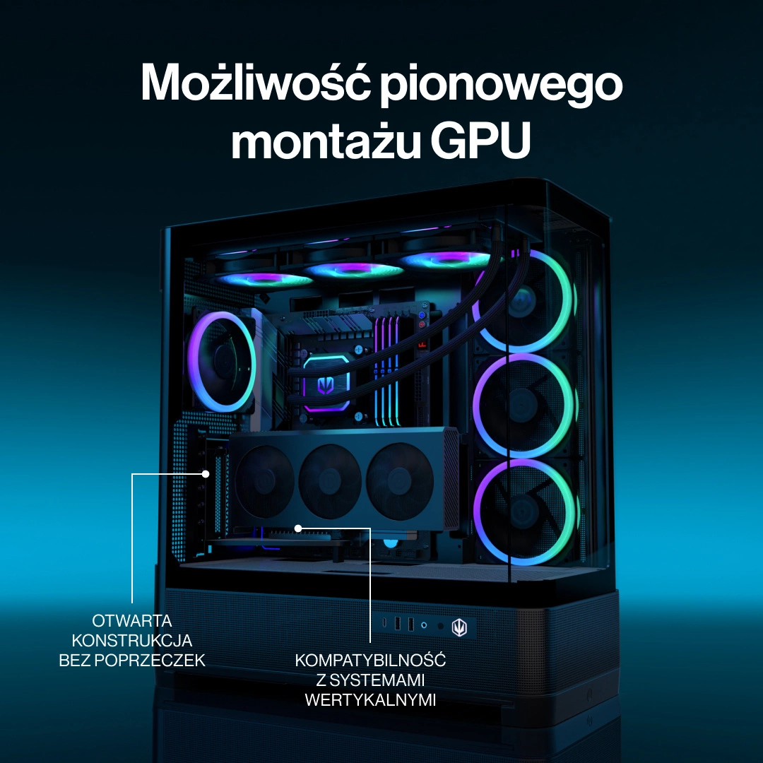 - Miejsce na kartę graficzną: Do 450 mm długości - Przestrzeń przystosowana do największych i najnowocześniejszych układów graficznych.