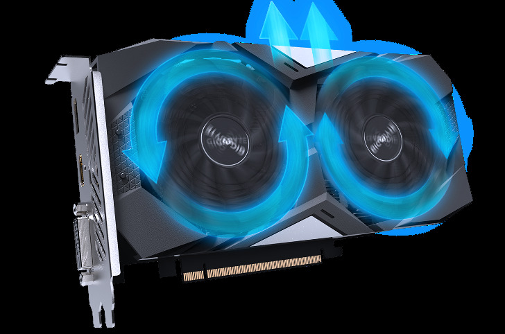 Dwa aktywne wentylatory o średnicy 90 mm z unikalnym kształtem łopat zapewniają półpasywne chłodzenie, pozwala to cieszyć się rozgrywką w całkowitej ciszy, gdy układ GPU nie jest w pełni obciążony. Wentylatory obracają się w przeciwnych kierunkach, dzięki temu kierunek przepływu powietrza między dwoma wentylatorami jest taki sam, zwiększa to ciśnienie przepływu powietrza oraz wydajność rozpraszania ciepła.