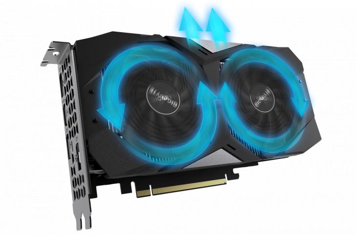 System chłodzenia WINDFORCE 2X posiada 2 unikalne wentylatory 90mm, 2 miedziane heat-pipe i funkcję aktywnego wentylatora 3D, zapewniając efektywną zdolność odprowadzania ciepła, a tym samym wyższą wydajność w niższych temperaturach.