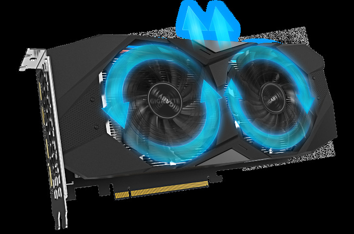 Dwa aktywne wentylatory o średnicy 100 mm z unikalnym kształtem łopat zapewniają półpasywne chłodzenie, pozwala to cieszyć się rozgrywką w całkowitej ciszy, gdy układ GPU nie jest w pełni obciążony. Wentylatory obracają się w przeciwnych kierunkach, dzięki temu kierunek przepływu powietrza między dwoma wentylatorami jest taki sam, zwiększa to ciśnienie przepływu powietrza oraz wydajność rozpraszania ciepła.
