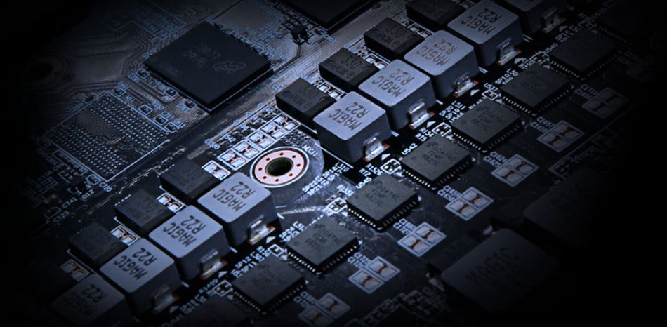 Karta graficzna wykorzystuje lepszą konstrukcję fazy zasilania, ochronę przed przegrzaniem i równoważenie obciążenia dla każdego tranzystora MOSFET, a także certyfikowane dławiki i kondensatory Ultra Durable, aby zapewnić doskonałą wydajność i dłuższą żywotność.