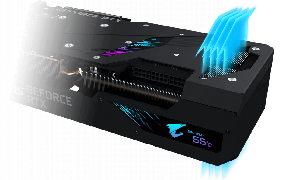 Dzięki miedzianej płycie, która maksymalizuje obszar bezpośredniego kontaktu z procesorem graficznym i pamięcią VRAM, specjalnie zaprojektowanym ciepłowodom oraz bezpośredniemu przepływowi powietrza poprzez kartę możliwe jest skuteczne odprowadzanie nagromadzonego ciepła. Ochronny metalowy back plate nie tylko zapewnia estetyczność, ale także wzmacnia strukturę karty graficznej.