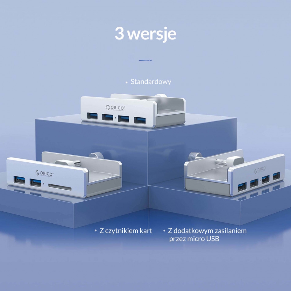 Nie masz miejsca na biurku, a brakuje Ci portów USB-A? A może po prostu cenisz sobie minimalistyczną przestrzeń? To nie problem - ten hub od Orico możesz zamontować bezpośrednio na swoim monitorze, iMacu, czy po prostu krawędzi biurka. To doskonałe rozwiązanie dla użytkowników bezprzewodowych peryferii komputerowych, takich jak myszy czy klawiatury.