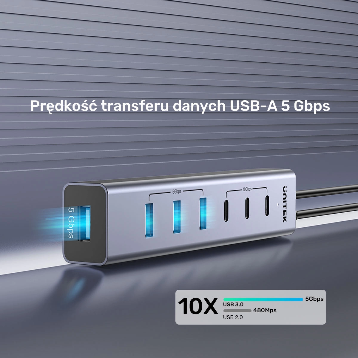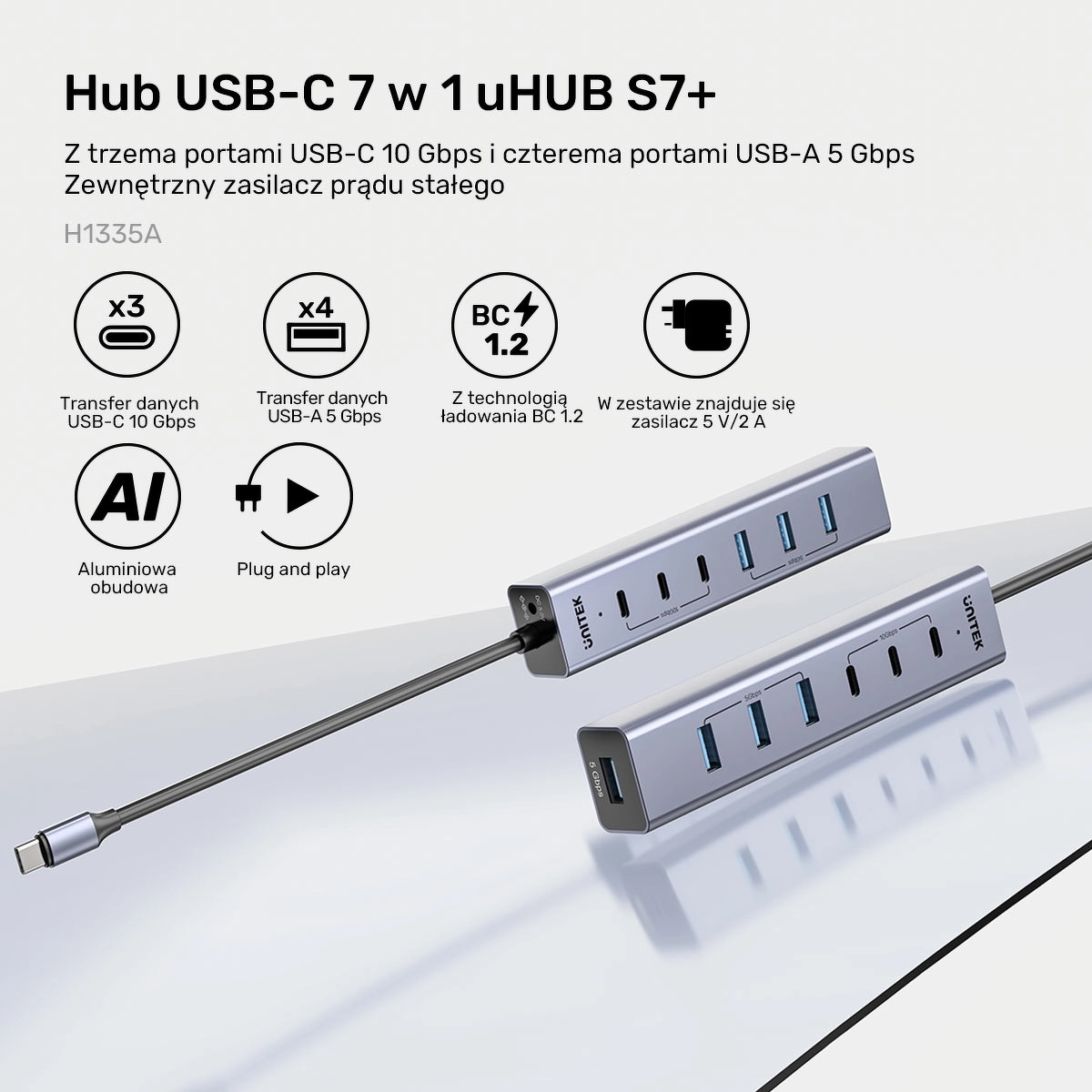 Hub aktywny USB-C 3x USB-C 10Gbps 4x USB-A 5 Gbps Unitek z zasilaczem