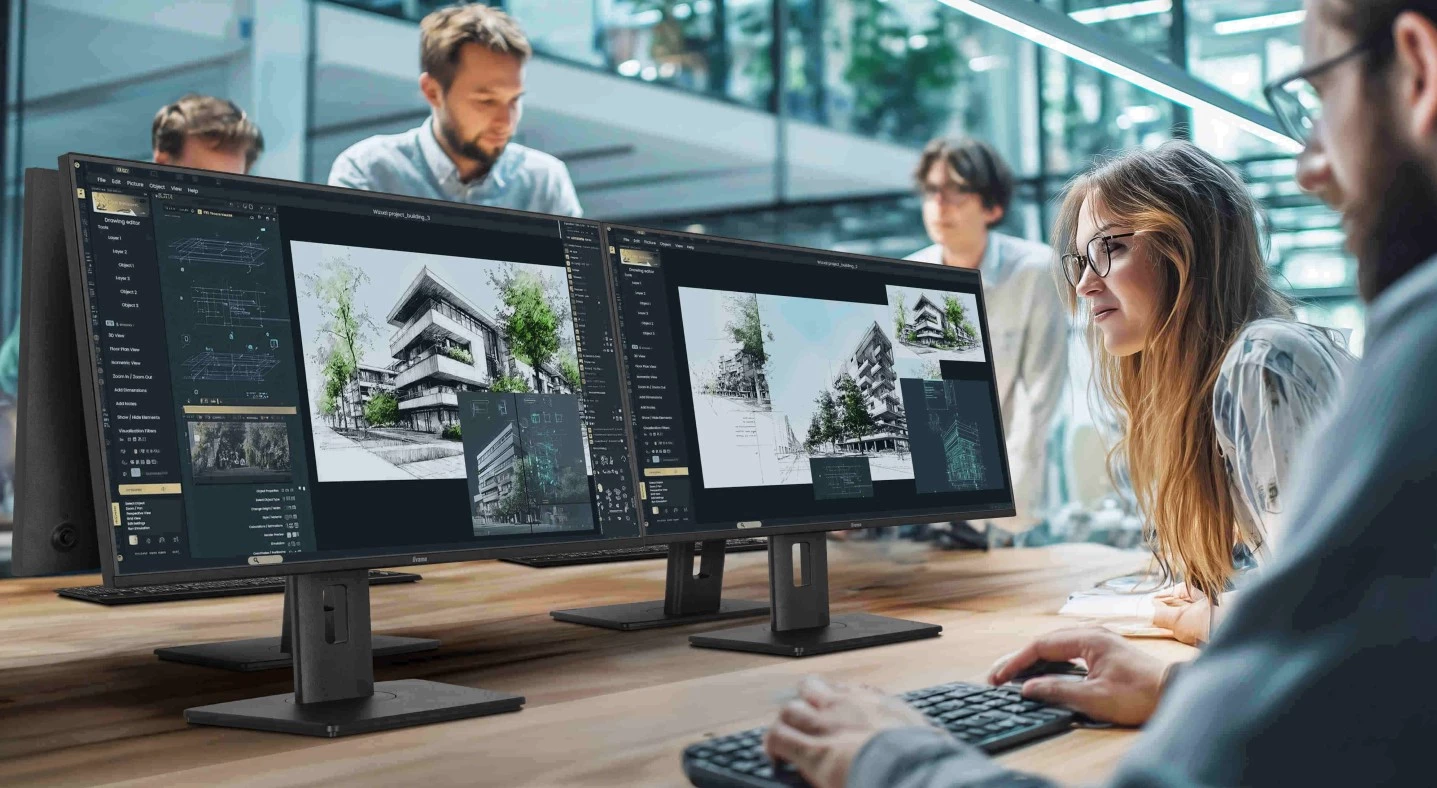 - Konstrukcja: Bezramkowa z 4 stron – umożliwia tworzenie estetycznych i spójnych stanowisk wieloekranowych.