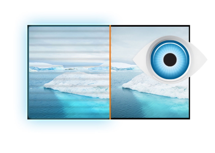 Technologia Flicker-free niweluje problem migotania dzięki zastosowaniu kontroli jasności ekranu poprzez regulację natężenia prądu (DC dimming). Funkcja redukcji niebieskiego światła ogranicza emisję światła, które jest najbardziej niezdrowe dla oczu.