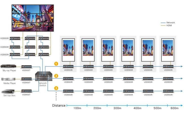 Urządzenie zostało zaprojektowane, aby sprostać dzisiejszym wymaganiom wielkoskalowej, wieloekranowej transmisji sygnału 4K, idealnie sprawdzi się w środowiskach takich jak targi, lotniska, kampusy uniwersyteckie, centra konferencyjne oraz galerie handlowe.