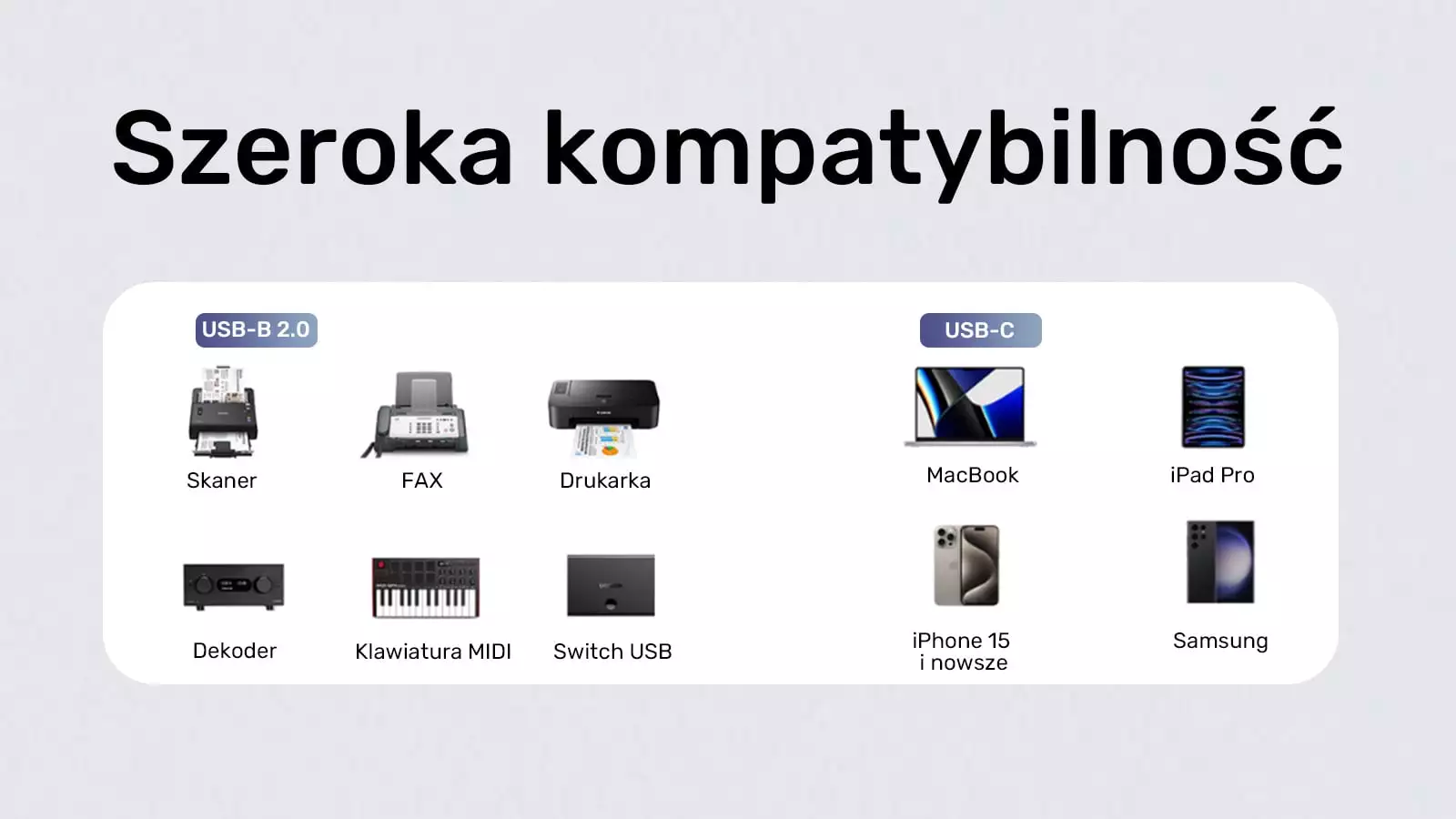 - Kompatybilność wsteczna: Działa zarówno z nowymi, jak i starszymi urządzeniami wyposażonymi w port USB-B.