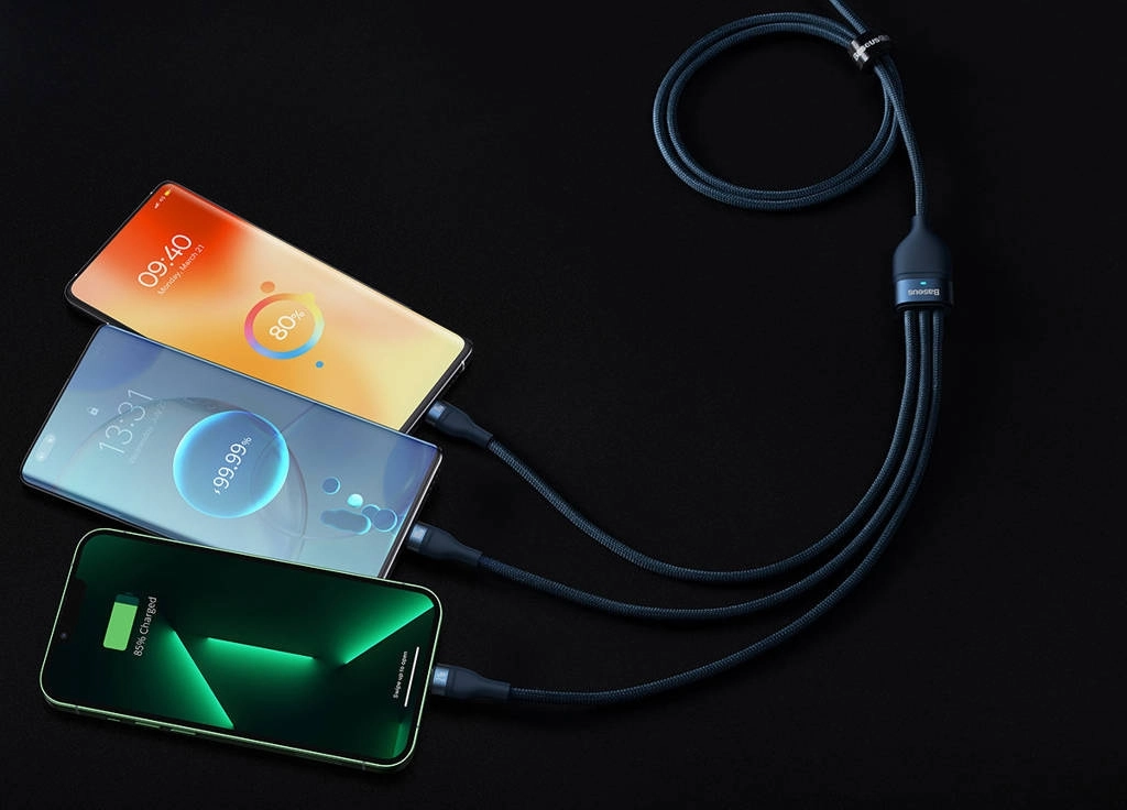- Standardy złącz: 3w1 – integruje wtyczki USB-C, Lightning oraz Micro USB w jednej, trwałej konstrukcji.