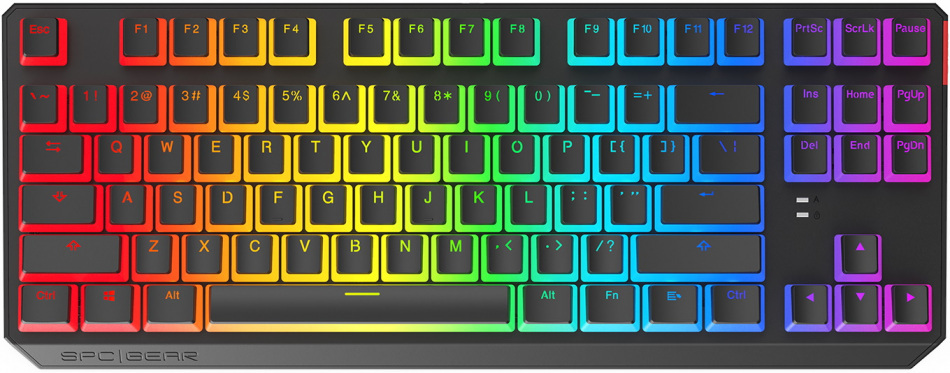 Wielokolorowe podświetlenie RGB umożliwia dostosowanie wyglądu klawiatury zgodnie z własnymi upodobaniami. 18 predefiniowanych efektów świetlnych zapewnia ogromne możliwości konfiguracji - od stałego jednobarwnego efektu, przez zmieniające się kolory tęczy, aż po podświetlenie reagujące na wciśnięcie konkretnego klawisza. To jednak nie wszystko, gdyż oprogramowanie klawiatury SPC Gear GK630K umożliwia dostosowanie każdego z efektów i ich zmianę wedle własnego uznania. Samo podświetlenie jest również funkcjonalnym dodatkiem, wyraźnie poprawiającym widoczność klawiszy zarówno w dzień, jak i w nocy.