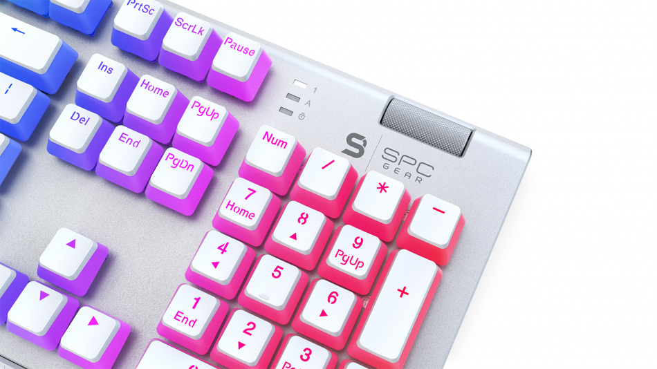 Konfigurowalne podświetlenie RGB daje niemal nieograniczone możliwości kombinacji kolorystycznych. Dzięki temu można wybrać spośród 18 różnych efektów - od podświetlenia stałego, przez ruchome wzory takie jak fala czy powolna zmiana koloru, aż do podświetlenia reagującego na wciśnięcie konkretnego przycisku. Wszelkich modyfikacji efektów można dokonywać poprzez oprogramowanie SPC Gear, co pozwala na indywidualne dopasowanie wyglądu podświetlenia.