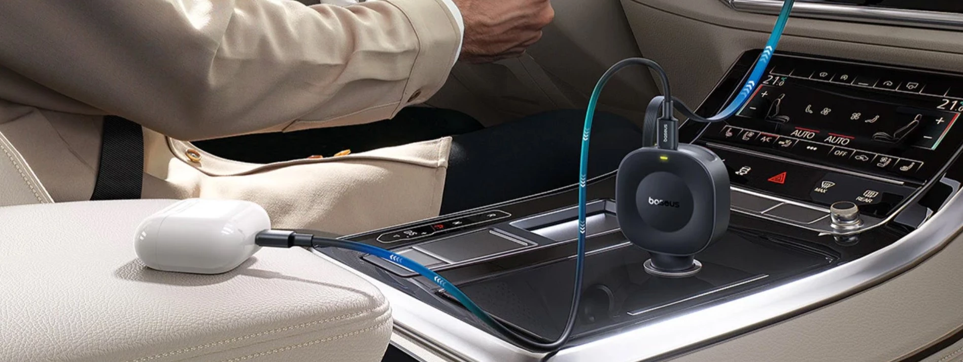 - Zwijane przewody: 80 cm – dwa zintegrowane kable typu USB-C z precyzyjnym mechanizmem automatycznego chowania.