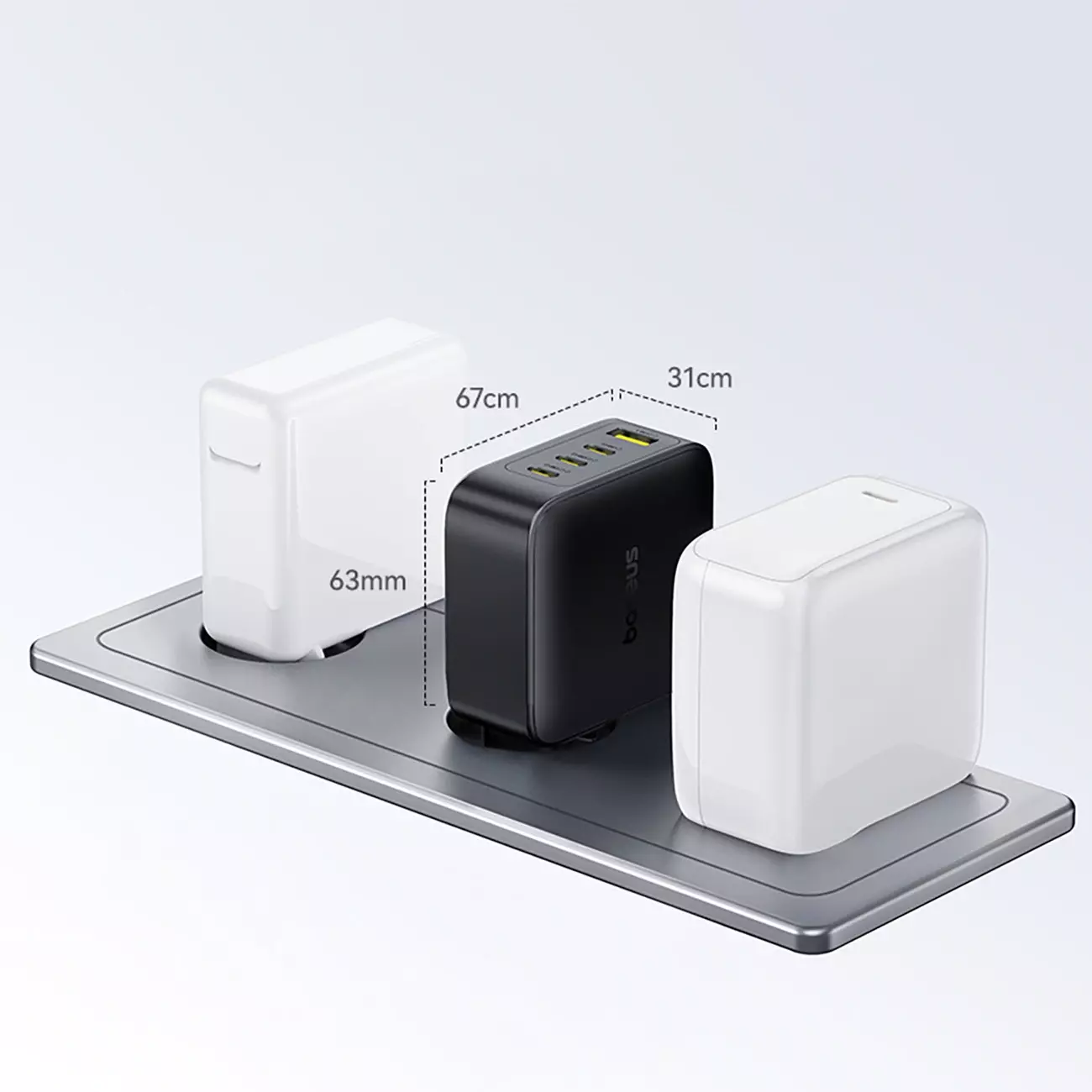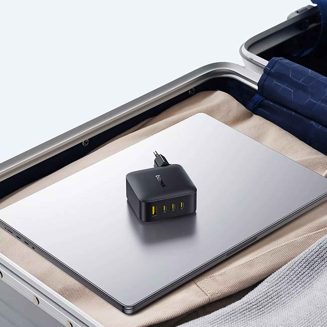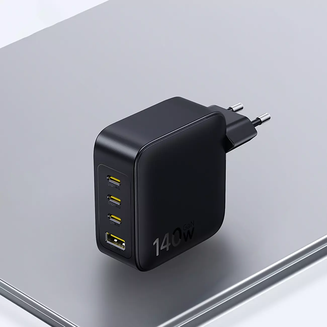 - Liczba portów: 4 złącza – trzy nowoczesne wyjścia USB-C oraz jedno klasyczne USB-A umożliwiają ładowanie szerokiej gamy urządzeń jednocześnie.