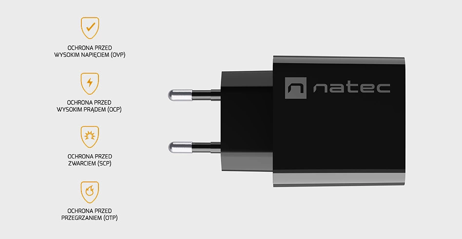 Ładowarka sieciowa Natec Ribera GaN Slim 1x USB-A + 1x USB TYP-C 20W