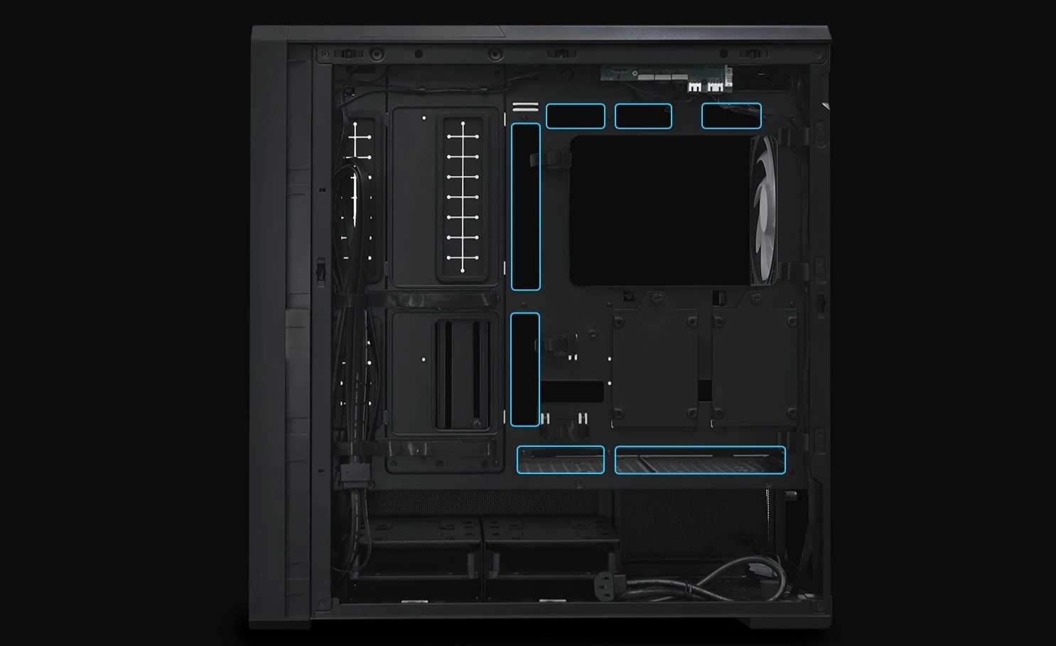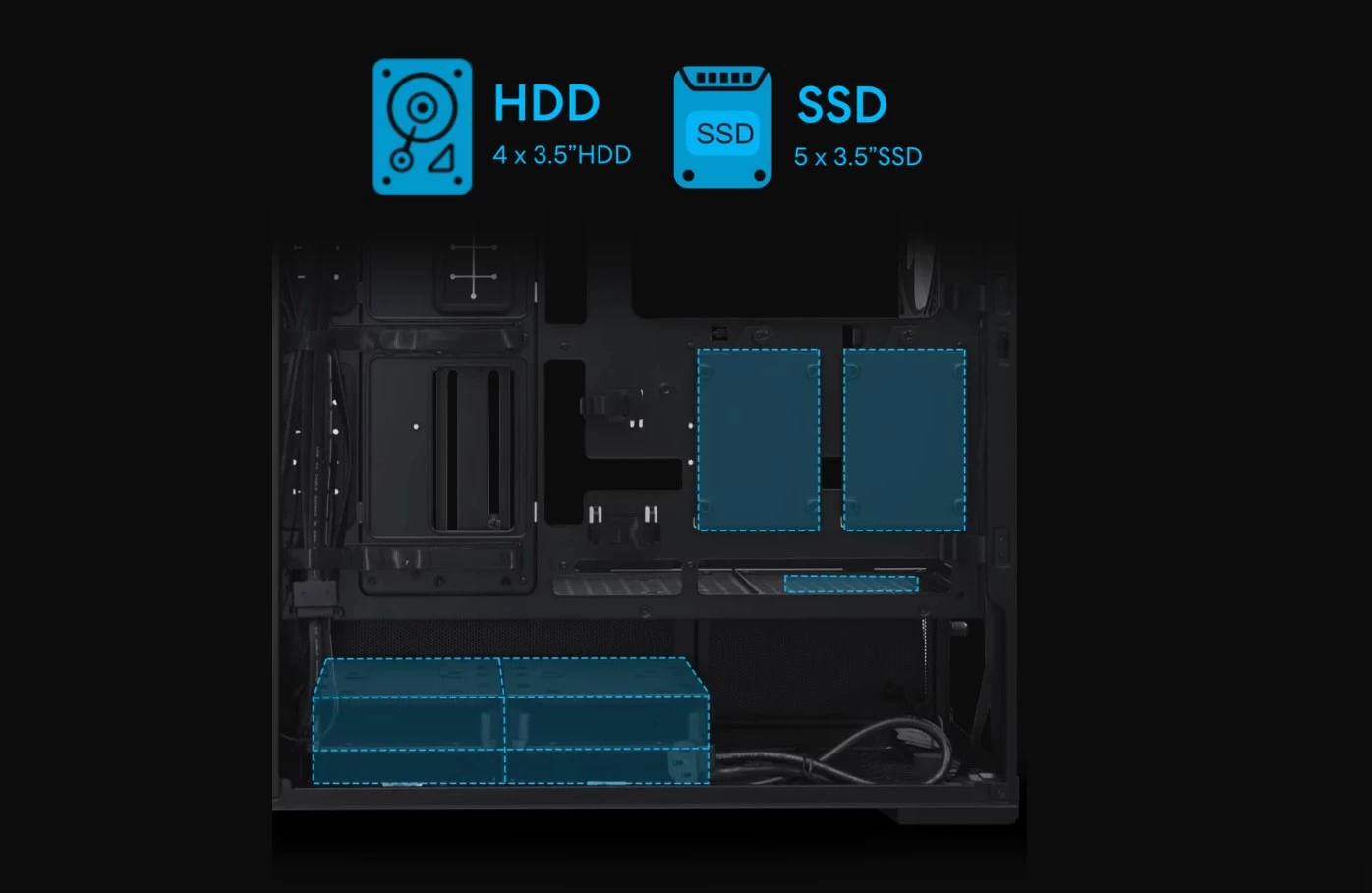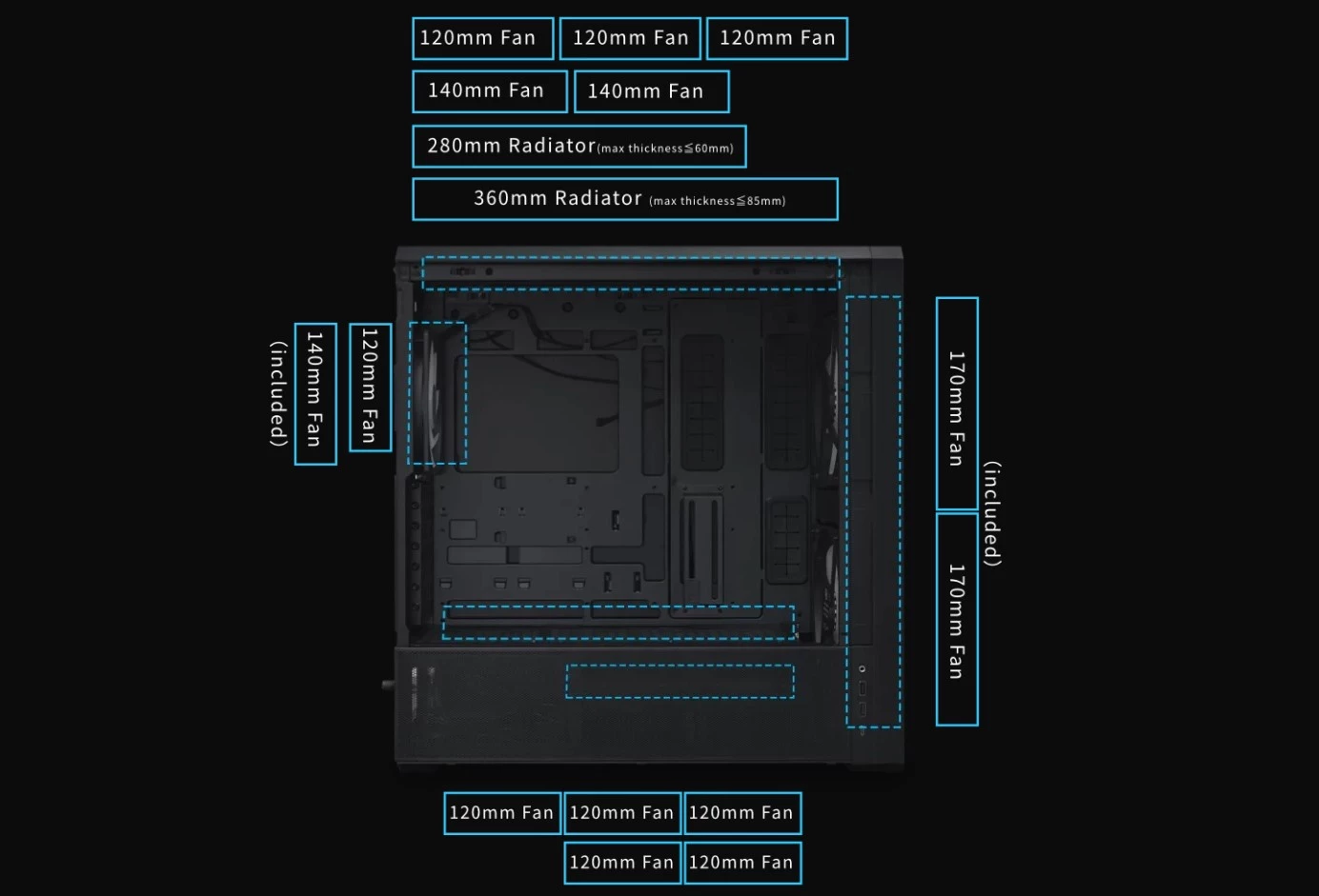 - Potencjał chłodzenia: Obsługa radiatorów do 360 mm i do 9 wentylatorów - Ogromne możliwości rozbudowy chłodzenia powietrznego lub wodnego.