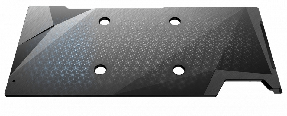 Lekka, kompozytowa tylna płyta mocująca z dodatkiem grafenu wzmacnia kartę graficzną na całej jej długości, zapewniając jednocześnie bardzo dobre, pasywne przewodnictwo cieplne.
