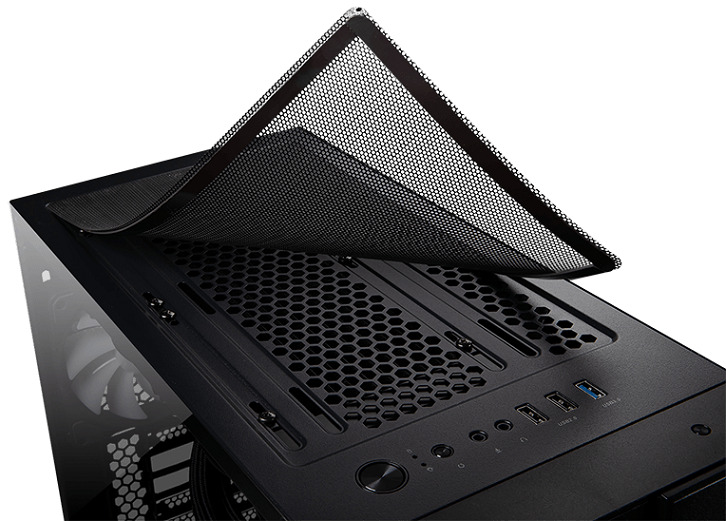 Górny panel został wyposażony w dwa porty USB 2.0 o przepustowości do 480 Mb/s, jeden szybki port USB 3.2 Gen 1 o przepustowości do 20 Gb/s oraz dwa gniazda audio typu mini-jack o średnicy 3,5 mm z obsługą standardu HD Audio umożliwiające podłączenie mikrofonu oraz słuchawek. Ponadto zastosowany magnetyczny filtr przeciwpyłowy na górnym panelu został zaprojektowany w sposób który umożliwia użytkownikowi łatwy demontaż oraz czyszczenie.