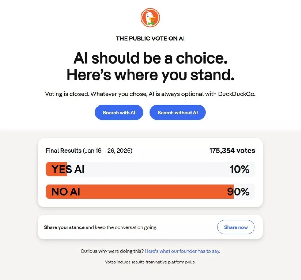 Bunt przeciw AI. 90% użytkowników DuckDuckGo na "nie" dla AI