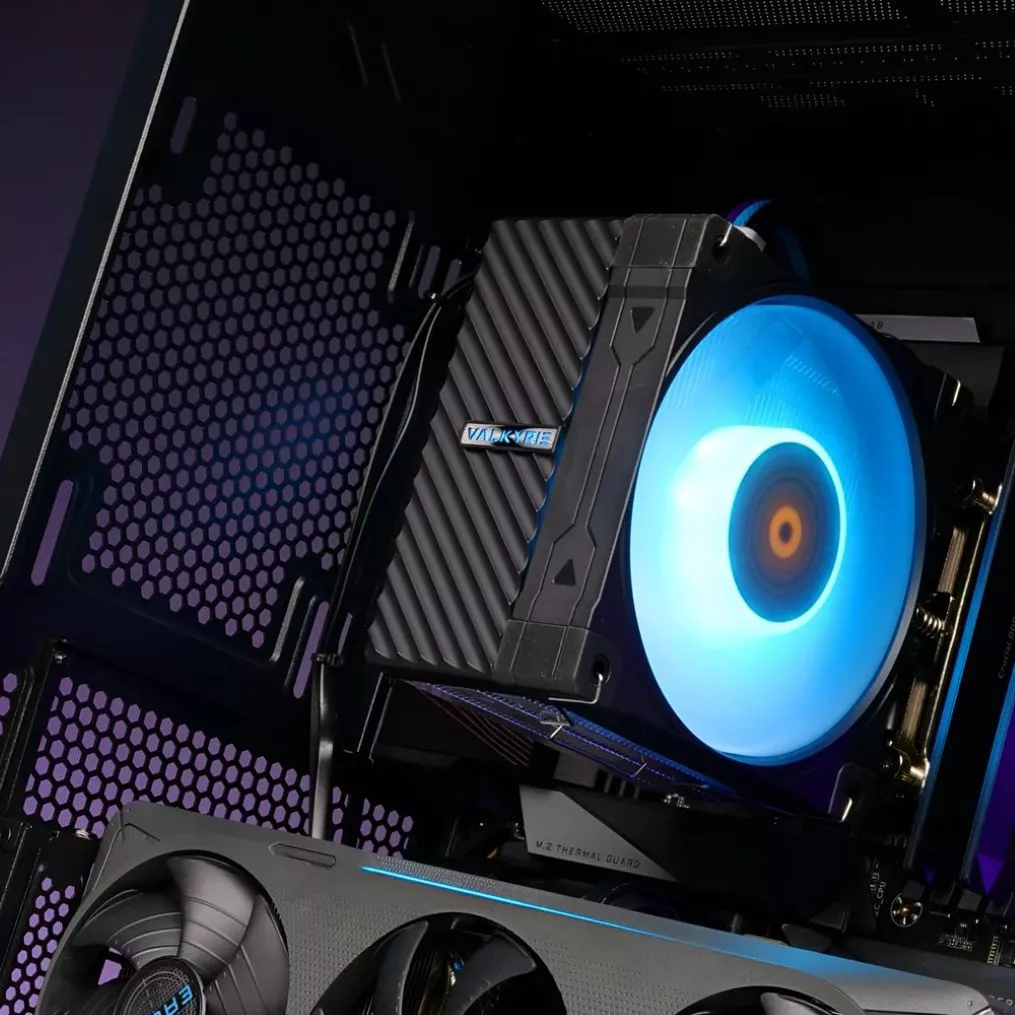 - Wentylatory: 2× Valkyrie U12 ARGB (wysokie ciśnienie statyczne i wysoki przepływ powietrza).