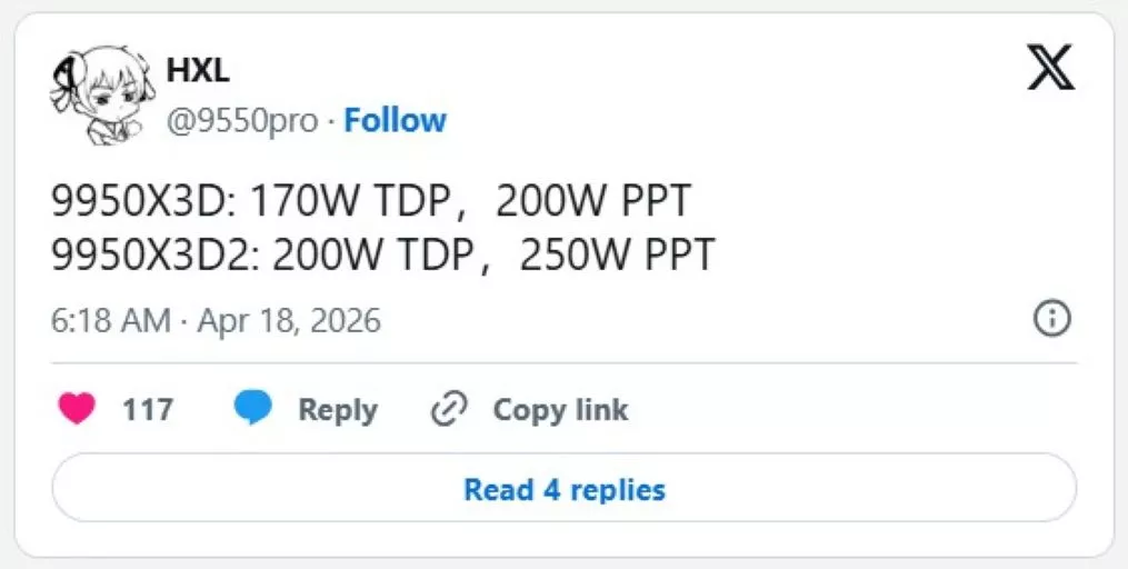 Ryzen 9 9950X3D2 z wyższym limitem mocy? Przeciek wskazuje nawet 250W PPT