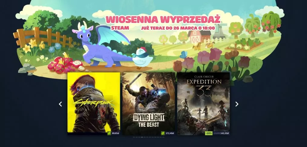 Na platformie Steam wystartowała jedna z najważniejszych promocji w roku - wiosenna wyprzedaż 2026. Gracze PC mogą przez ograniczony czas kupić setki gier w mocno obniżonych cenach. Wiosenna wyprzedaż Steam 2026 rozpoczęła się 19 marca i potrwa do 26 marca, więc gracze mają tylko tydzień na skorzystanie z okazji.