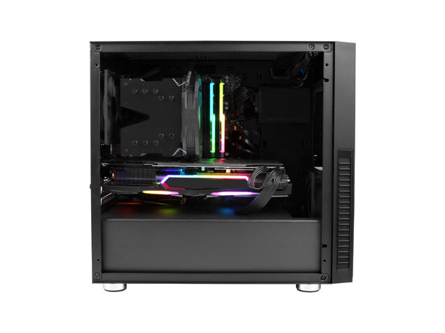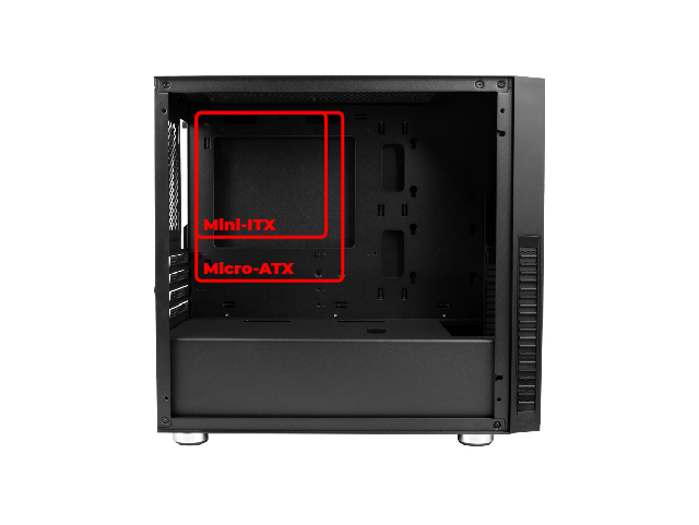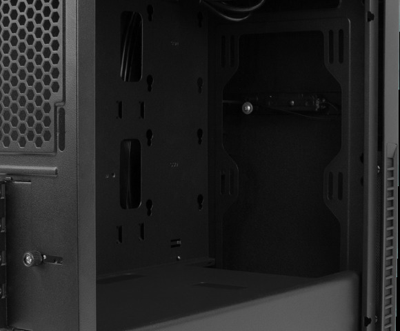 Obudowa jest przygotowana pod dwa rozmiary płyty głównej. Wygodnie i bez najmniejszych problemów zatrudnisz do pracy Mini-ITX oraz Micro-ATX wiedząc równocześnie, że masz jeszcze sporo miejsca dla pozostałych podzespołów.