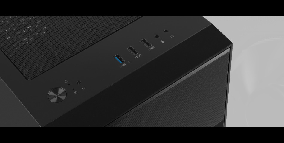 Na górze obudowy dla Twojego komfortu dostajesz w sumie aż 3 porty USB w tym USB 3.0. Dopełnienie stanowią dwa gniazda jack, w które wepniesz zarówno słuchawki jak i mikrofon.