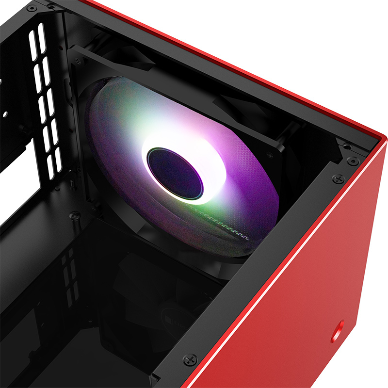 Obudowa Jonsbo T8 Mini-Tower posiada fabrycznie zamontowany wentylator RGB LED o średnicy 140 milimetrów. Dzięki temu obudowa świetnie się prezentuje, zwłaszcza po zmroku.