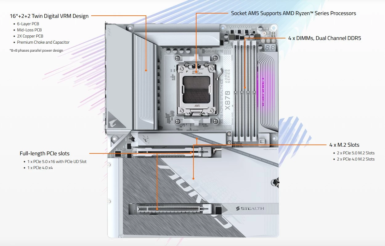 Płyta główna Gigabyte X870 AORUS Stealth ICE