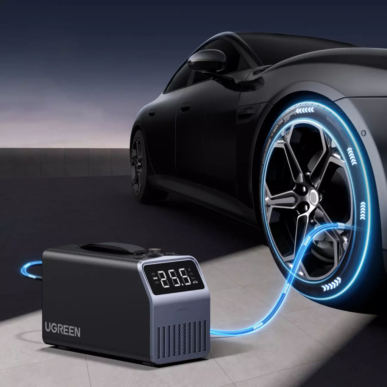 Pompka elektryczna Ugreen 150 PSI 12V do opon samochodowych z wyświetlaczem