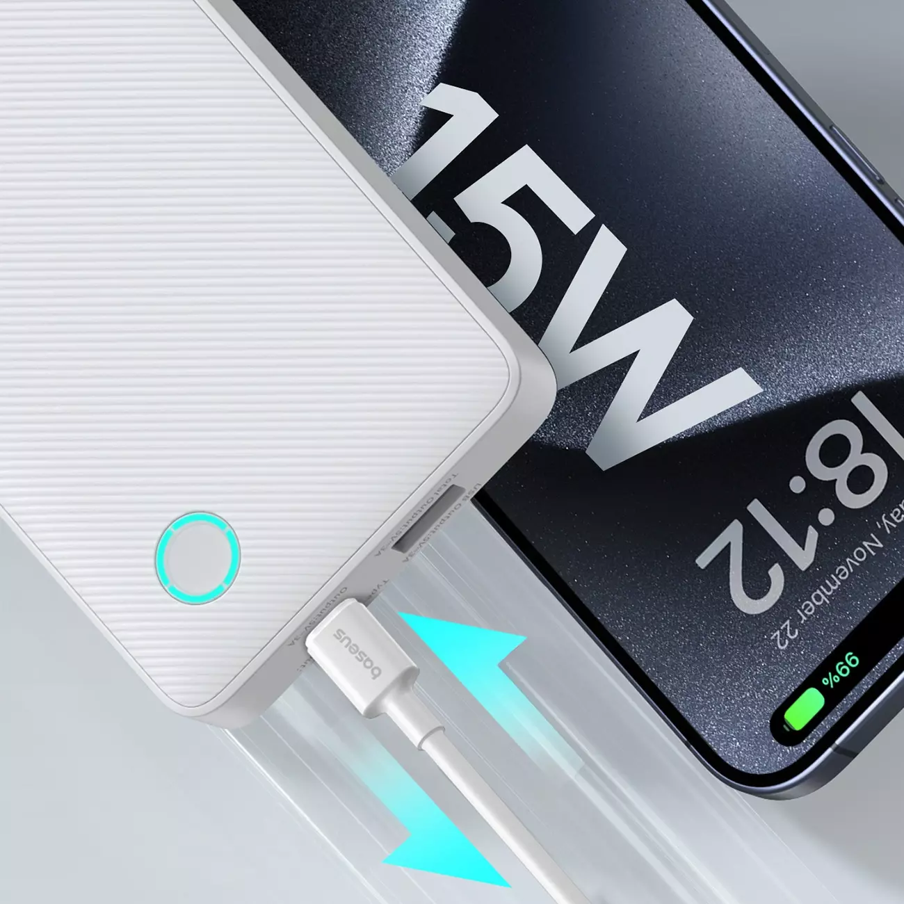 Powerbank Baseus Airpow Lite 10000mAh 15W z kablem Baseus Simple USB-A - USB-C 30cm - biały