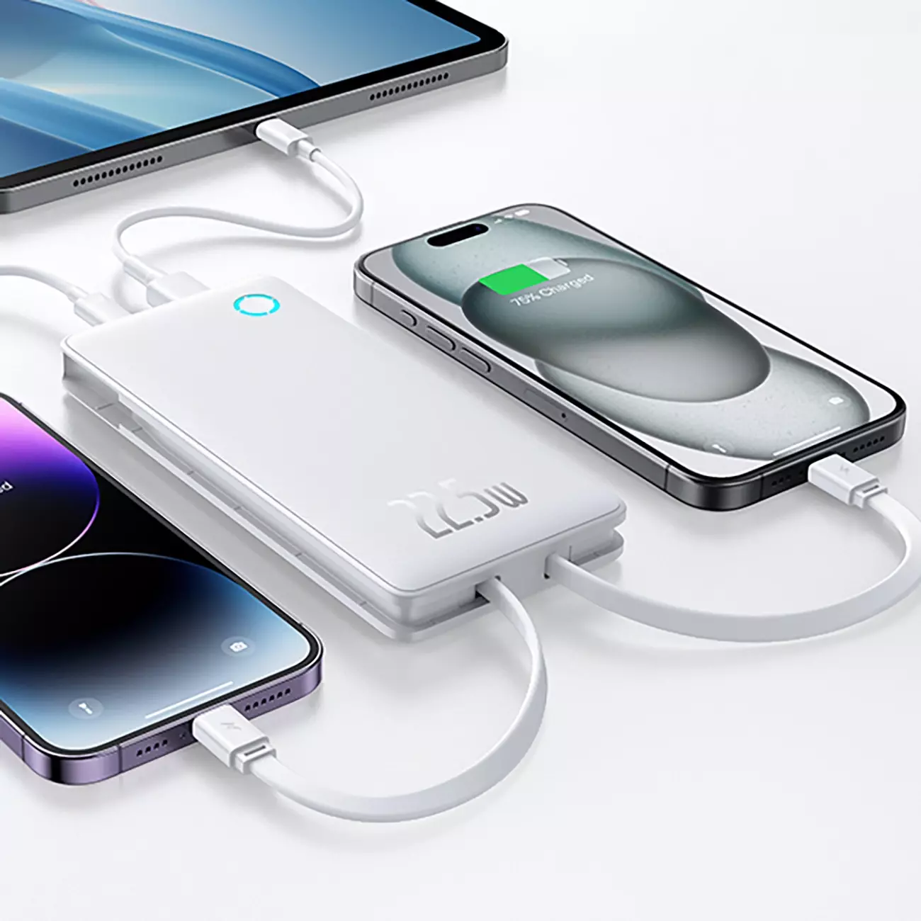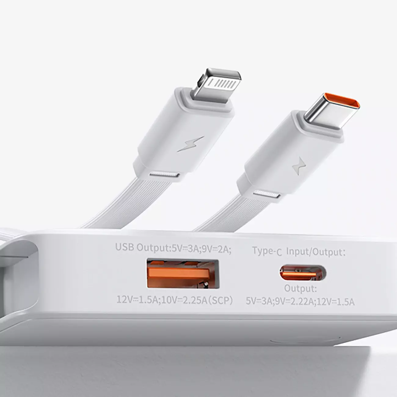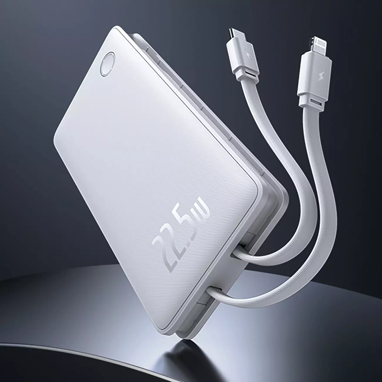Powerbank Baseus Airpow Lite 10000mAh 22,5W z wbudowanymi kablami USB-C i Lightning - biały