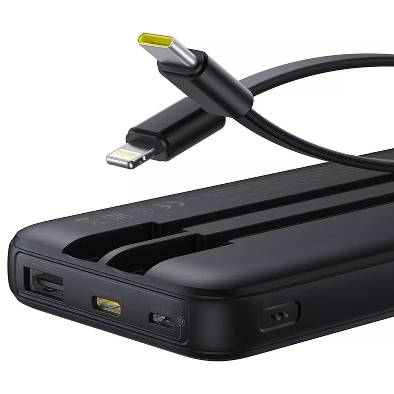 Powerbank Baseus Lipow 10000mAh 22.5W z podwójnym wbudowanym kablem z wyświetlaczem (z dodatkowym czarnym kablem Baseus Simple USB-A - USB-C 3A 0,2m) - czarny