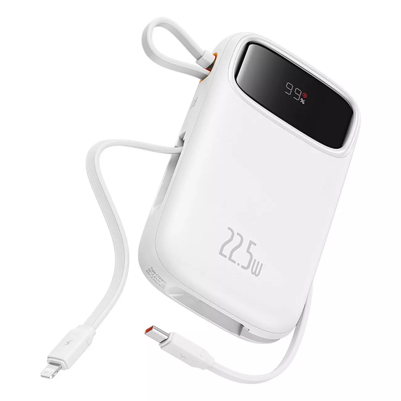 - Wbudowane kable: USB-C i Lightning – zintegrowane przewody z wygodnym mechanizmem ułatwiają transport i eliminują konieczność posiadania dodatkowych akcesoriów.