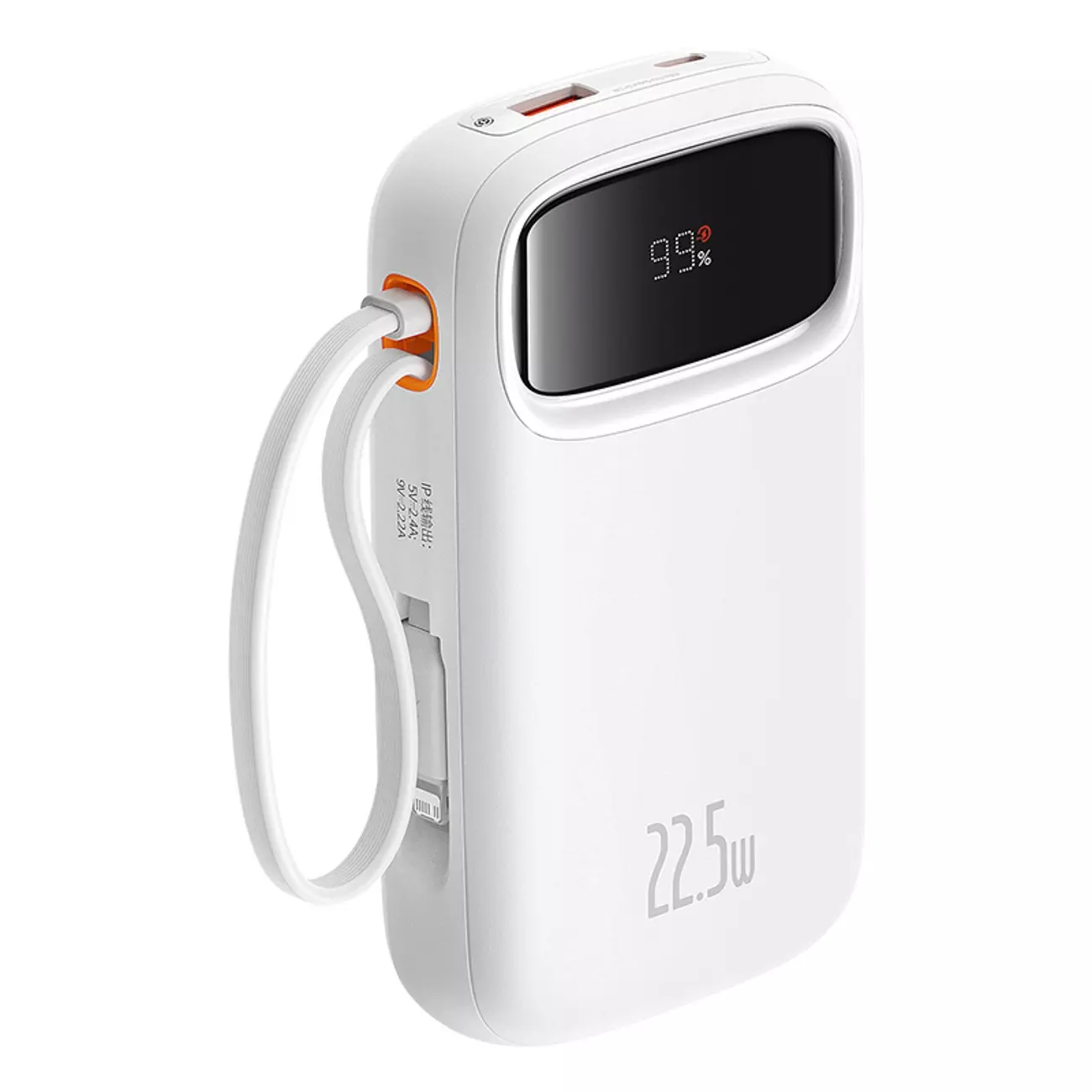 Powerbank Baseus Qpow2 20000mAh 22,5W z podwójnym kablem z wyświetlaczem cyfrowym + kabel Baseus Simple USB-C 3A 0,3m (biały) - biały