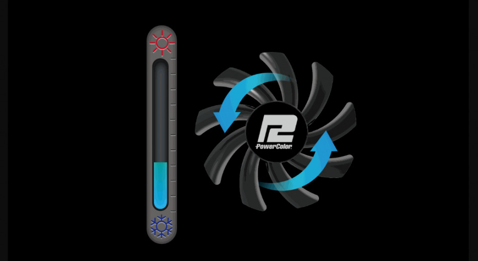 Karta graficzna PowerColor Fighter RX 6600 XT ma zoptymalizowaną konstrukcję wentylatorów 2 x 90 mm, aby zapewnić najlepszą wydajność chłodzenia.
