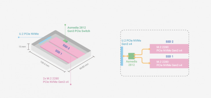 Qnap QDA-U2MP 2,5 calowy adapter U.2 NVMe to dual M.2 NVMe SSD