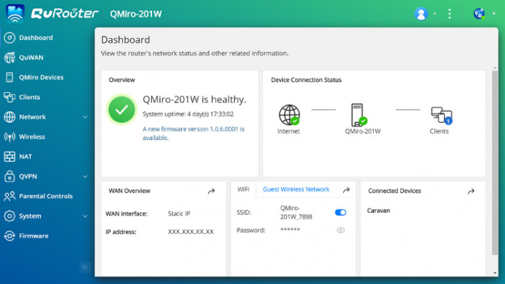 Dzięki opartemu na sieci Web GUI i szybkiemu pulpitowi nawigacyjnemu, system operacyjny QuRouter zapewnia przyjazny dla użytkownika interfejs do codziennego zarządzania siecią. QMiro-201W obsługuje także konfigurację routera bezprzewodowego lub trybu AP za pośrednictwem systemu operacyjnego QuRouter, umożliwiając wysyłanie adresu IP jako router główny lub otrzymywanie adresu IP z innego routera głównego. Dzięki QuRouter OS użytkownicy mogą nie tylko efektywnie zarządzać wszystkimi podłączonymi urządzeniami przewodowymi i bezprzewodowymi w czasie rzeczywistym, ale mogą również konfigurować zaawansowane funkcje NAT, VPN, bezpieczeństwa i QuWAN.